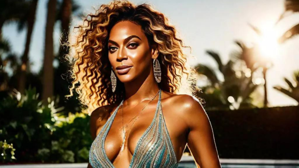 Dive into the mesmerizing world of art with our hyper-realistic depiction capturing the iconic Beyoncé Knowles in a breathtaking scene. Immerse yourself in the glamour as Beyoncé, the Hollywood sensation, graces a serene swimming pool in a stunning two-piece bikini, exuding elegance and charm.